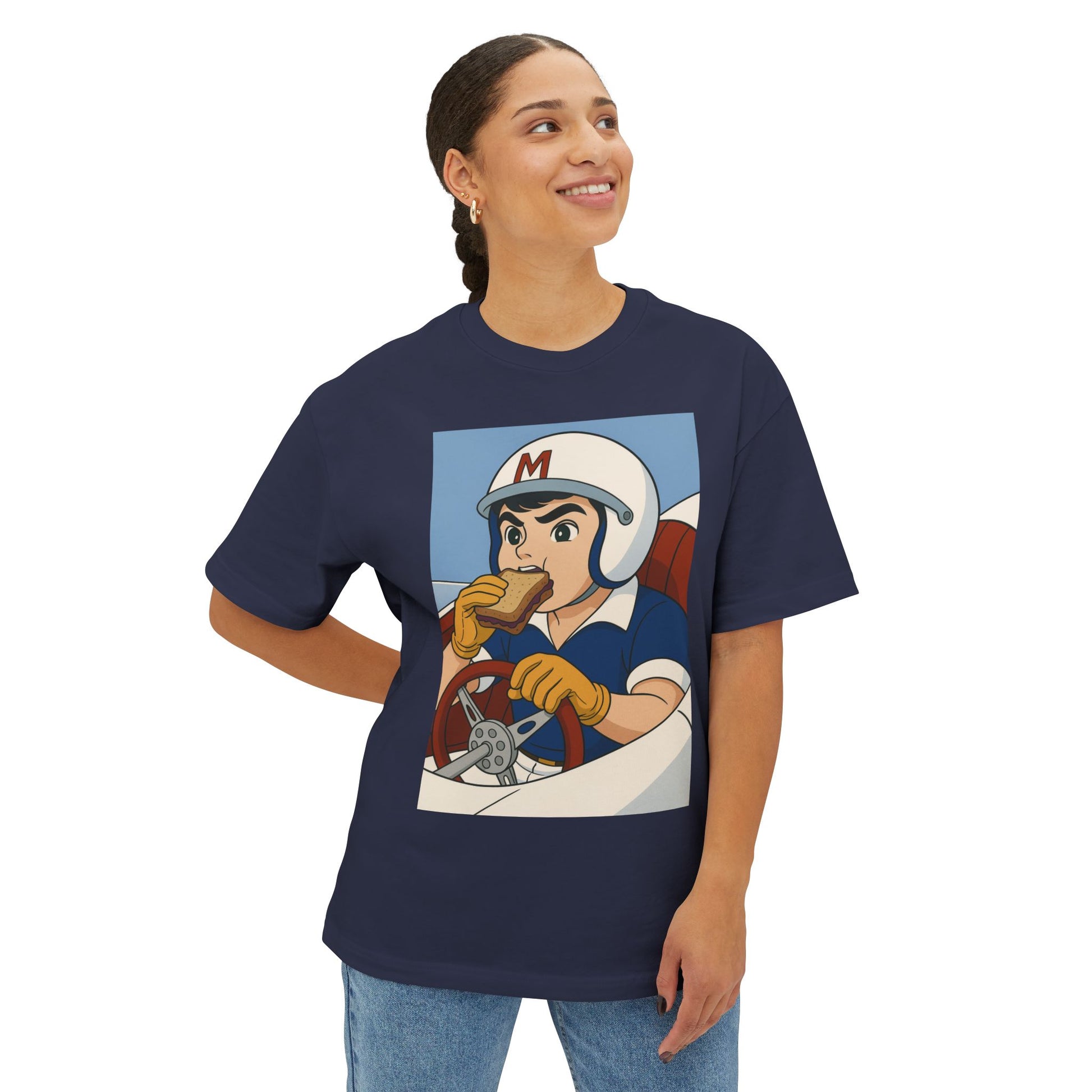 Speed Racer Retro Graphic Tee, Fun Artwork Shirt, Casual Wear, Gift for Gamers, Earth Day Apparel, Unisex Oversized Tee
